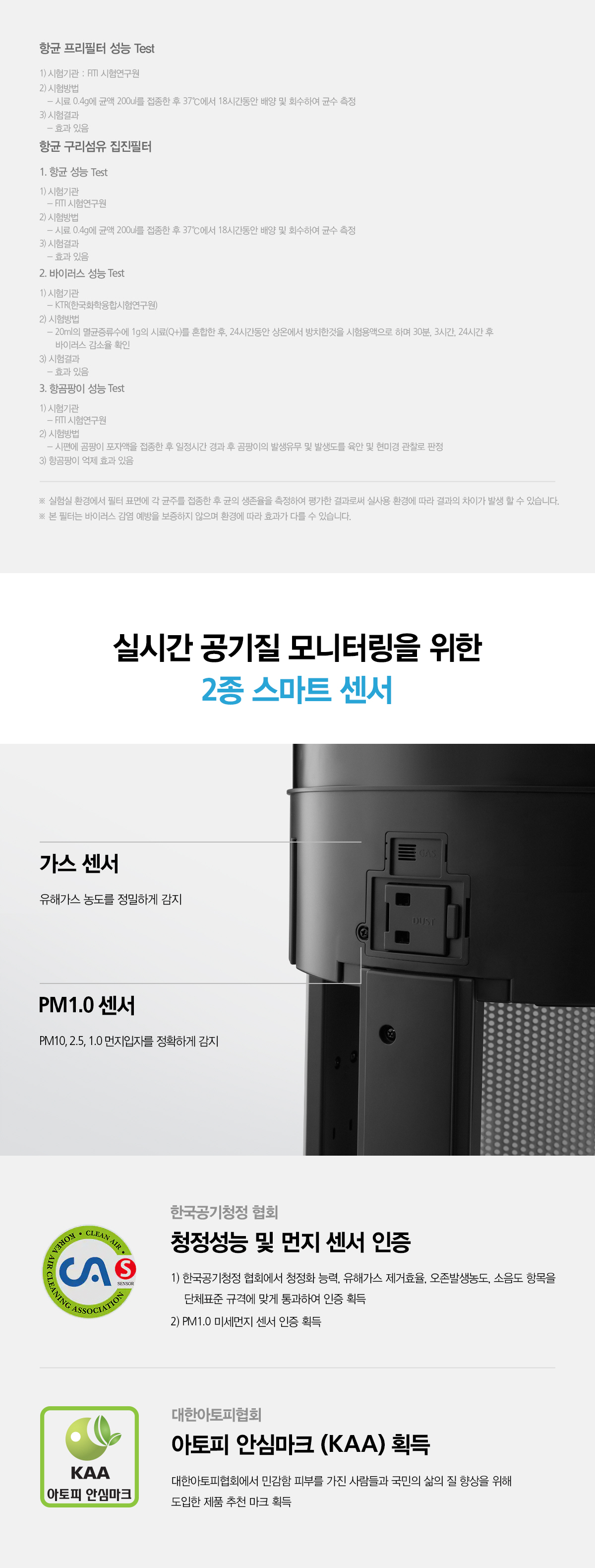 올클린 공기청정기는 프리 + 집진 이중 향균 필터로 되어있어서