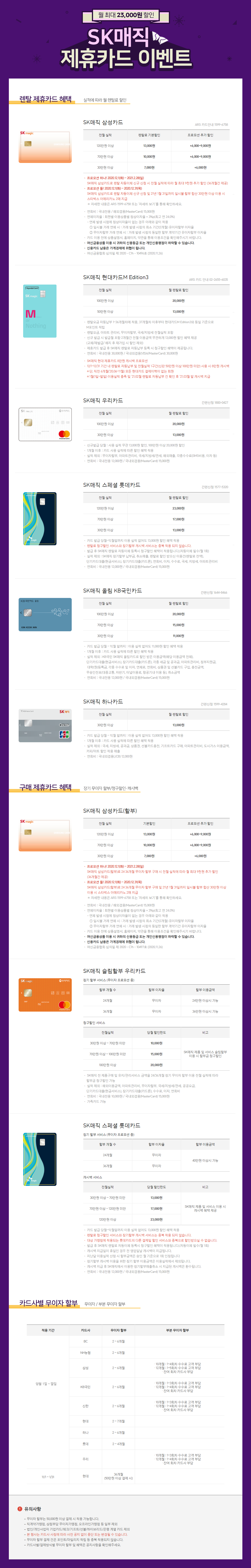 SK매직 제휴카드가 있는데요! 전월 실적에 따른
