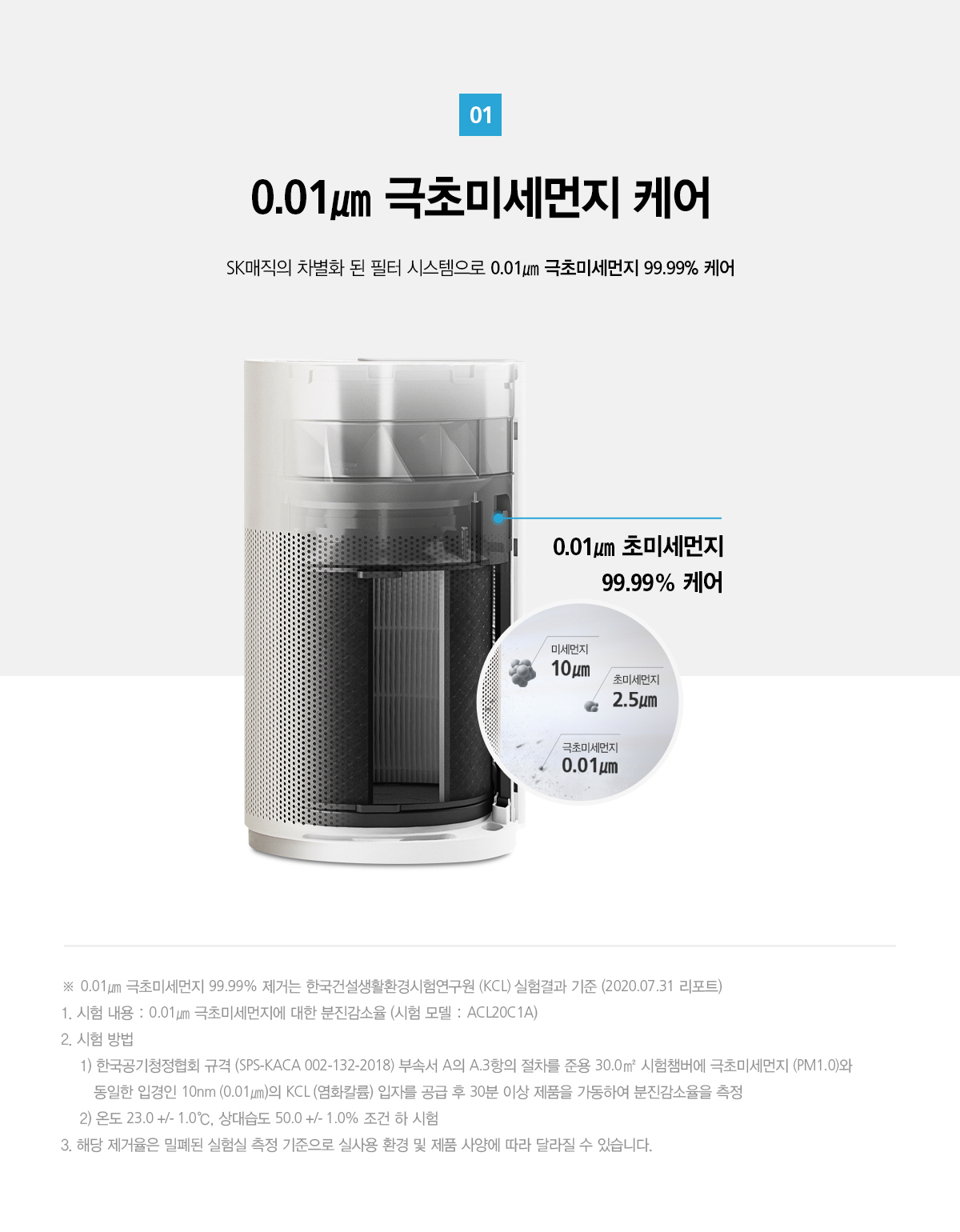 SK매직의 차별화 된 필터 시스템으로 극초미세먼지 99.99% 케어해주어요.