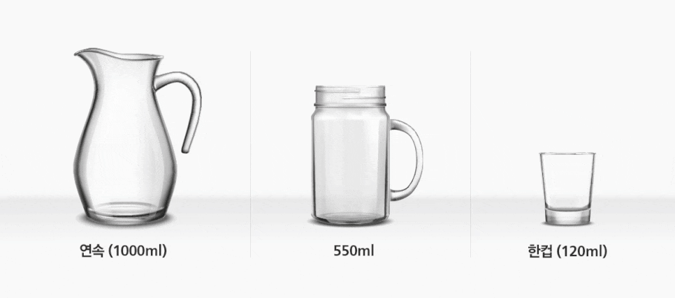 연속 추출 / 550ml / 한컵(210ml) 중 필요한 만큼
