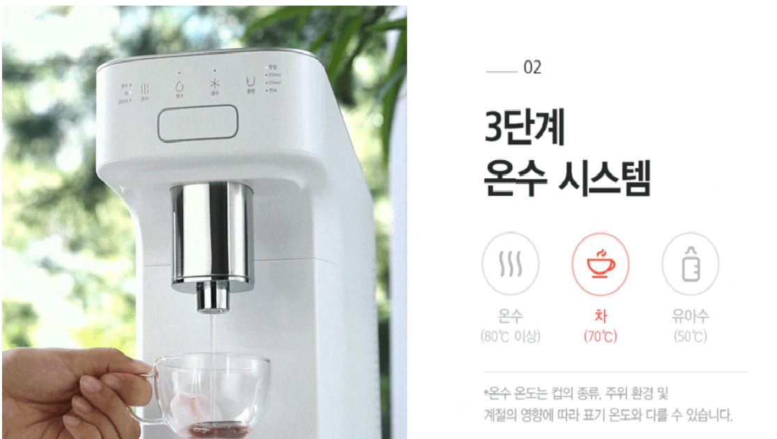 분유를 탈때에 유아수에 맞는 온수를 공급해줄수있어서