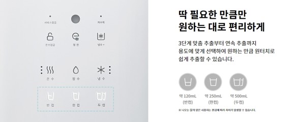 스마트 밸브가 있기 때문에 정수와 냉수를