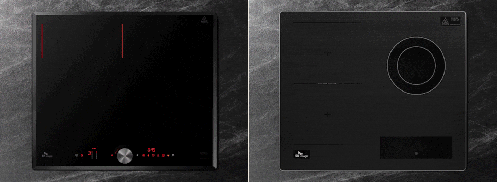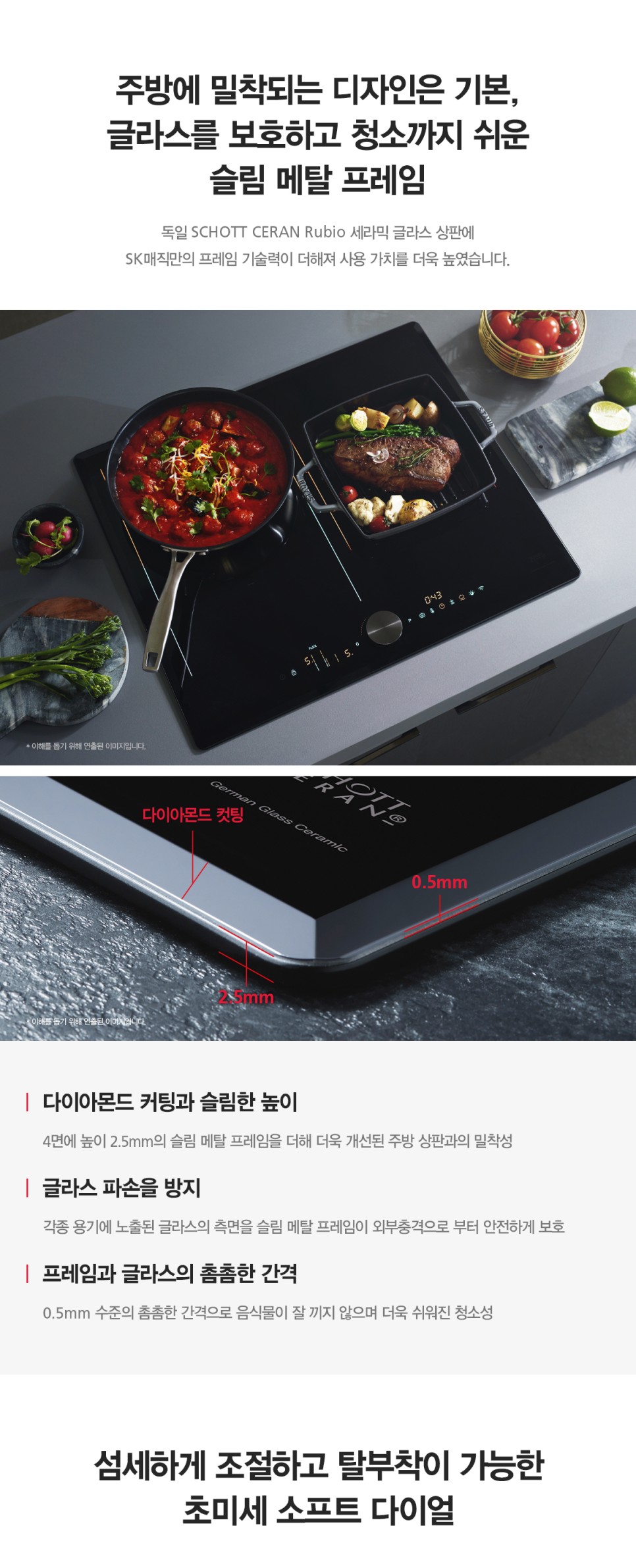 주방에 밀착되는 디자인과 세라믹 글라스 상판, 메탈 프레임 다이아몬드 커팅으로