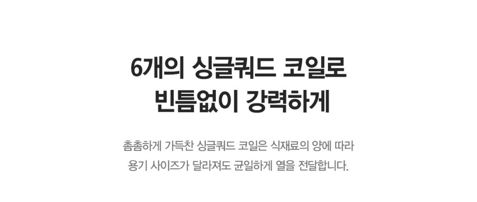 촘촘하고 빈틈없이 열을 가할수있도록 6개의 싱글쿼드 코일로