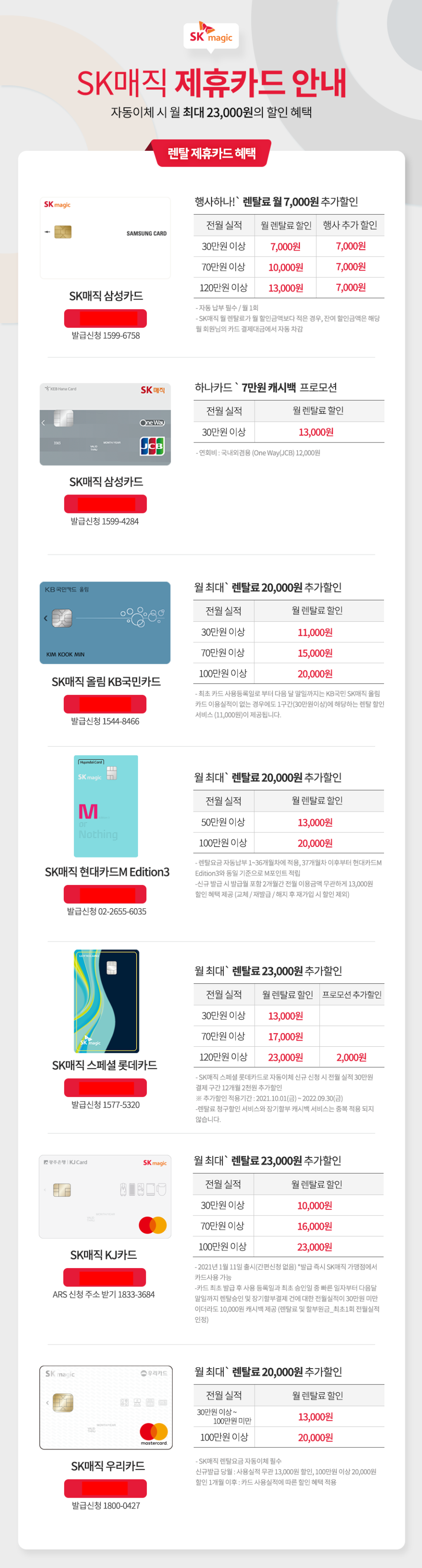 많은 분들께서 제휴카드 할인으로 월 렌탈료를 할인받고 계신데요