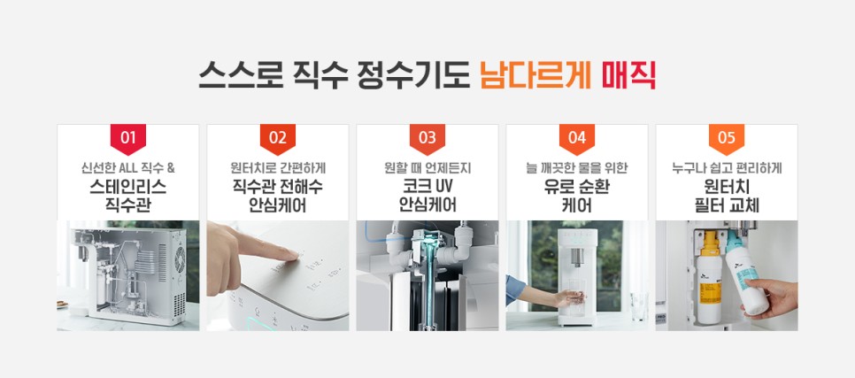 자가관리에 최적화 되어있는 스스로 직수 정수기로