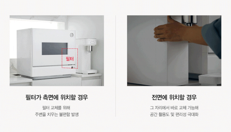 전면 필터 배치로 정수기를 붙여놓아도 문제없이