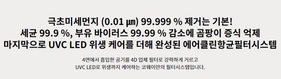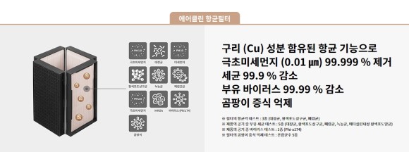 구리 성분 함유된 항균기능으로 극초미세먼지 99.999% 제거는 기본이고