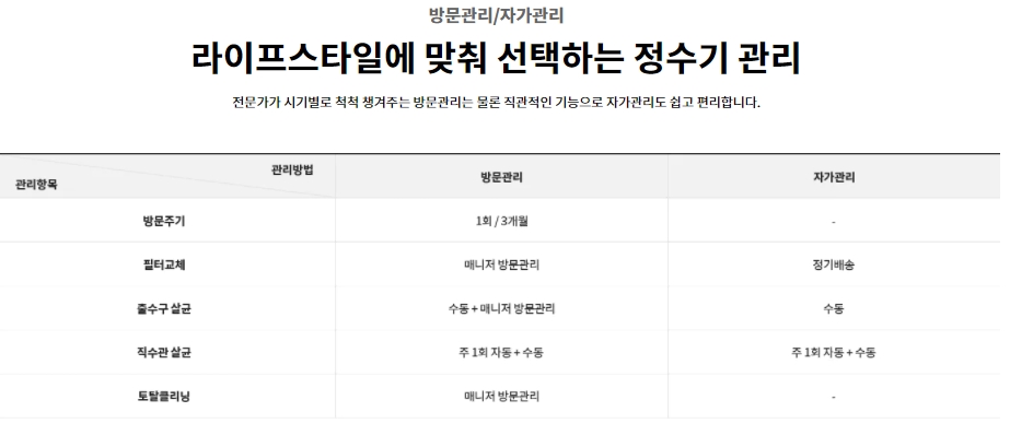 정수기는 한 번 놓으시면 오랜 기간 이용되는 제품이기때문에