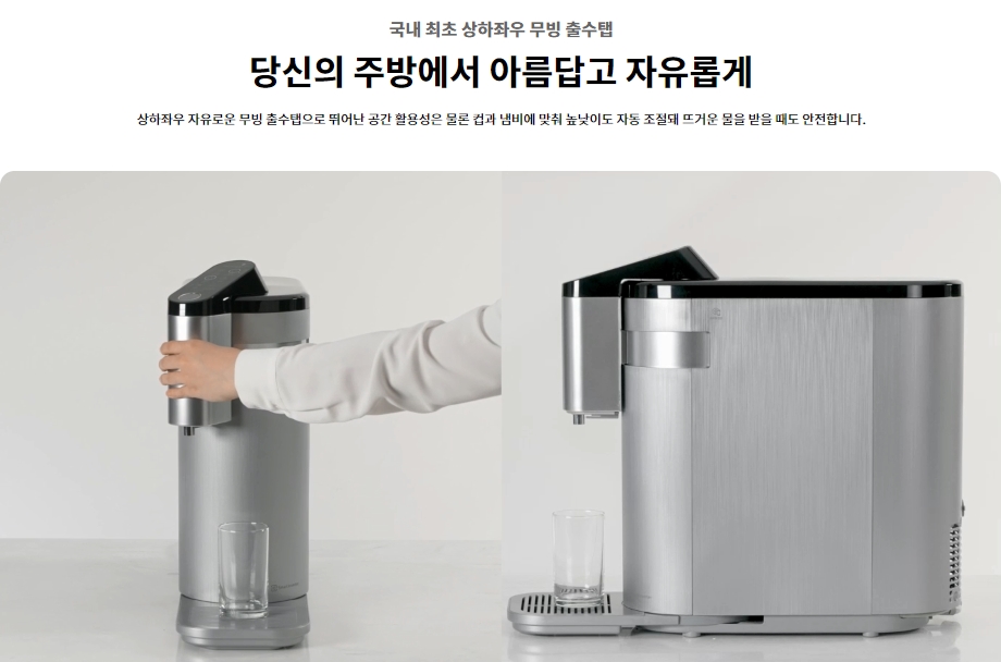 그 밖에도 빌트인방식의 듀얼정수기와 사무실,업소에서 더 적합한 스탠드정수기도