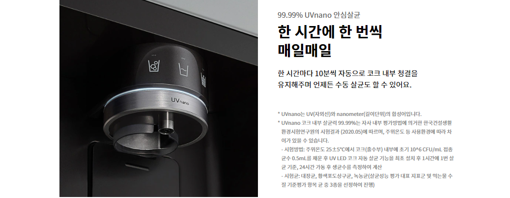 자동으로 코크 내부를 99,99% 살균해주기때문에