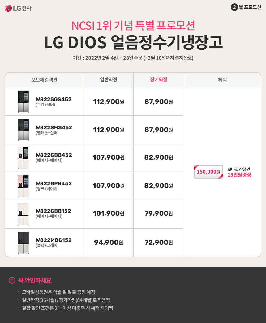 도봉냉장고렌탈 어떤 제품을 선택하시더라도 모바일상품권15만원까지 증정해드리고 있으니