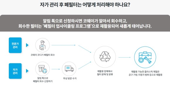 코웨이에 회수 신청을하면 무상 방문 수거를 해주고