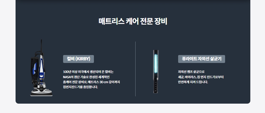 - 매트리스 케어: 진드기, 세균 제거를 위한 살균 및 클리닝 서비스