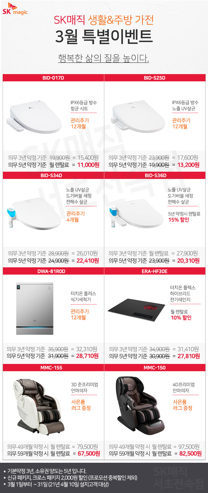 SK매직의 렌탈 제품들을 모두 만나보실수 있습니다!
