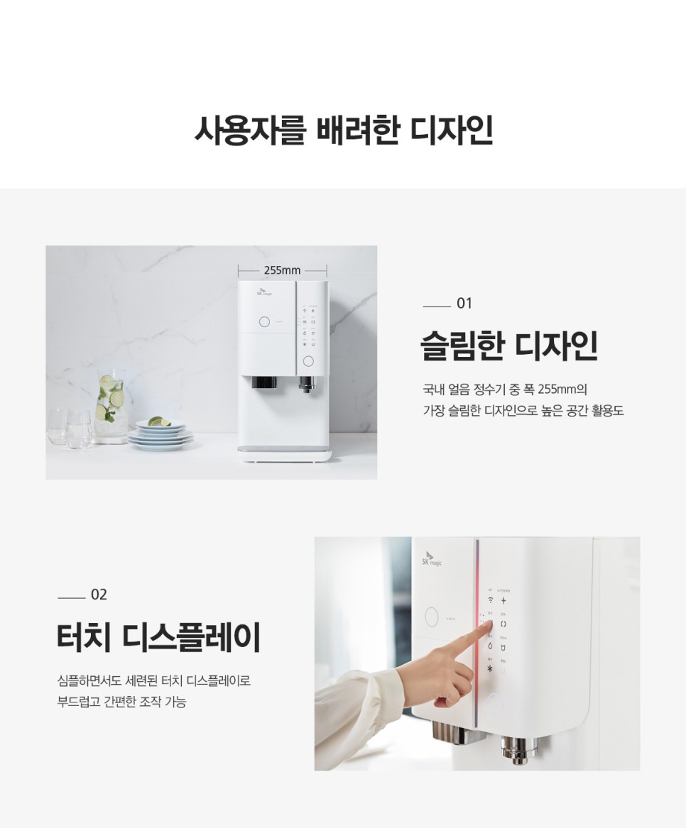 국내 얼음정수기 폭 중 가장 슬림한 255mm의 크기이기 때문인데요!