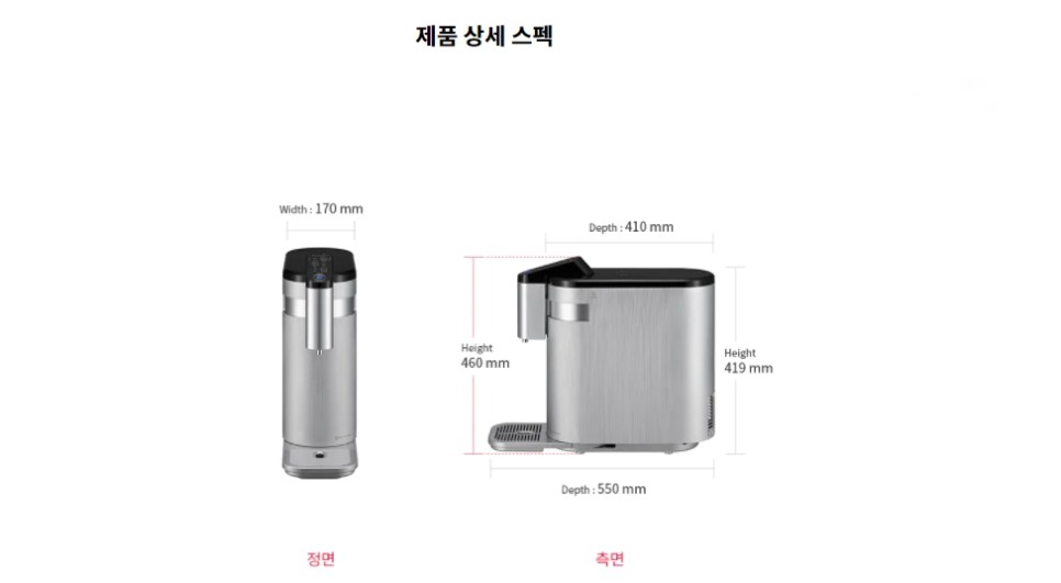 정수기를 비교하실 때 가장 먼저 확인하실 수 있는 디자인.