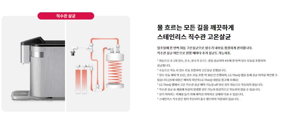 송파구엘지정수기렌탈 자유로운설치방향