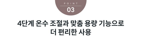 4단계 맞춤 온수와 5단계 맞춤 추출 기능이 있어요.