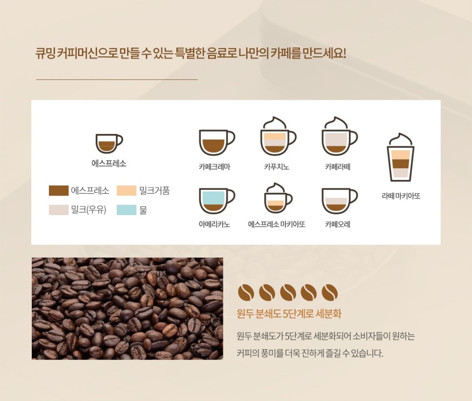 최고의 기술력이 집약된 큐밍 커피머신기는