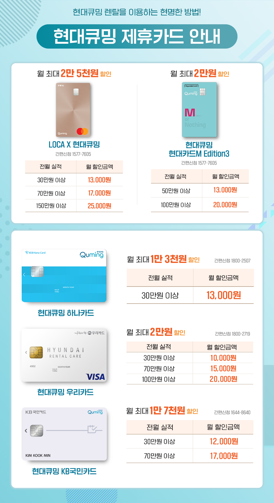 현대큐밍 제휴카드를 통해서 할인혜택까지 받아볼 수 있기 때문이에요!^^